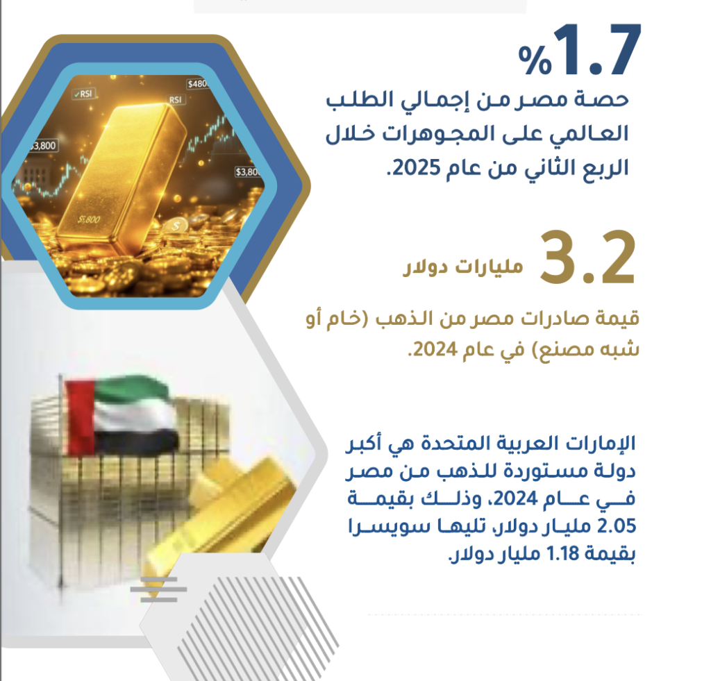 • ١٫٧٪ – تمثل حصة مصر من إجمالي الطلب العالمي على المجوهرات خلال الربع الثاني من عام ٢٠٢٥.