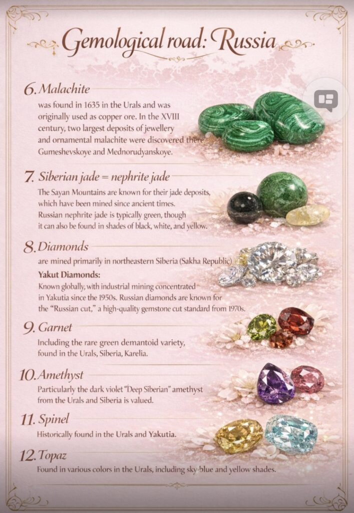 أمثلة من الاحجار الكريمة المستخرجة من روسيا ومواقع الاستخراج: